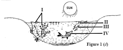 Name the trophic level occupied by each of the organisms I, II, III and IV in the habitat.